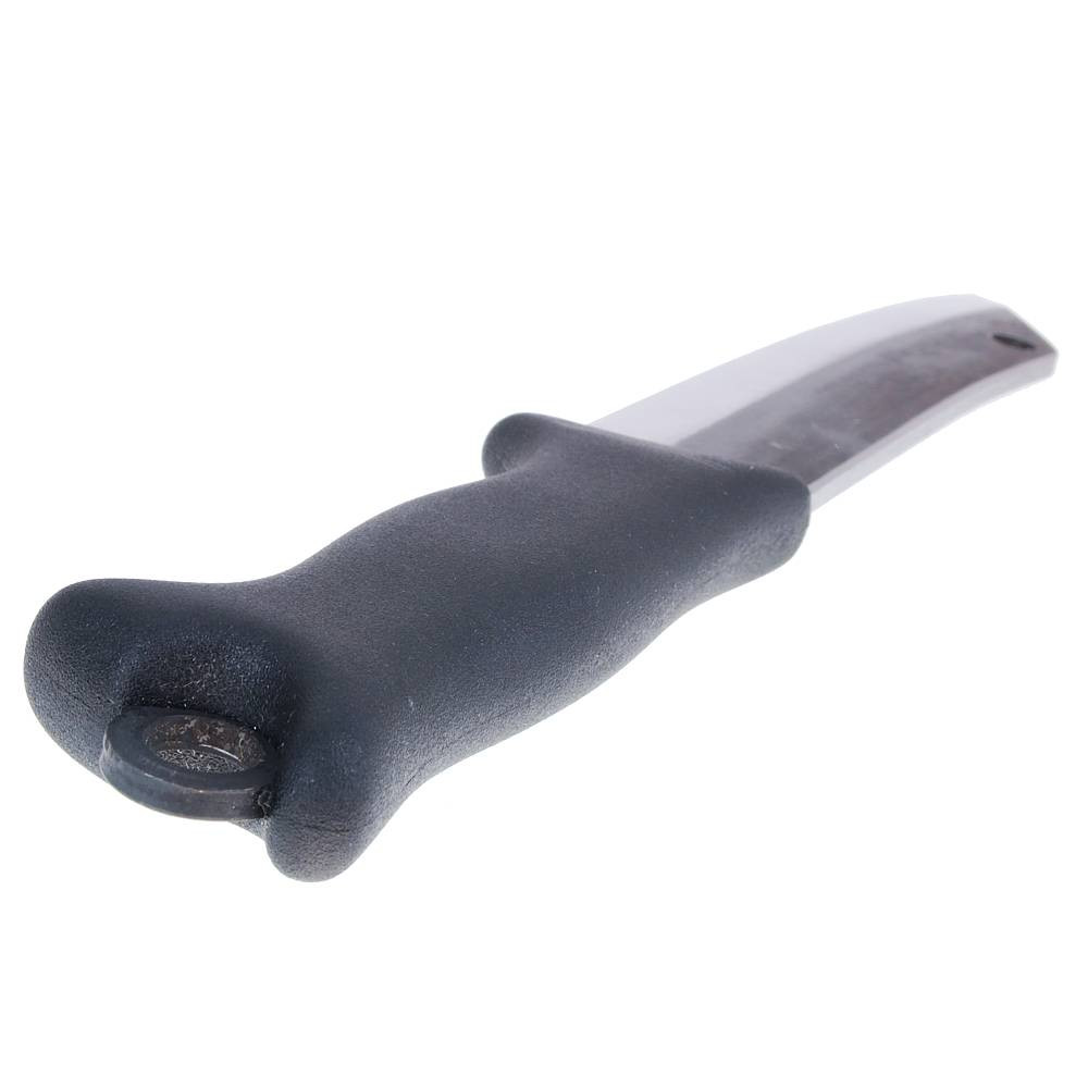 The blade is slightly curved, with a hole in the tip for hanging. The back of the blade is flat, with no teeth or anything else, perfect for chopping up a piece of wood when batoning (don't use a rock/axe/anything but wood or you may damage the blade!) Full blade design, ends with a hole protruding from the handle for hanging from a belt / strap. The blade may have small stains on the surface caused by the manufacturing process. These are not a defect and are easily removed.