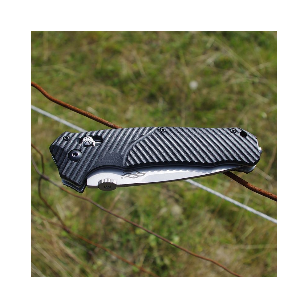 Zamknięcie z ostrzem blokady osi, uchwyt G-10 ze stalowymi wkładkami. Ostrze ma 85 mm długości o grubości 3,5 mm, ma płaskie cięcie. Ostrze otwiera się dwustronnym kołem. Dwustronny klips "głęboki kieszonkowy" (nóż na klipsie prawie nie jest widoczny w kieszeni). Stopa stopy jest wyposażona w rodzaj końcówki, która z pewnością nadaje się do awaryjnego pęknięcia bocznej szyby samochodu. Nóż jest wyposażony w opakowanie z tkaniny i pudełko na prezent.