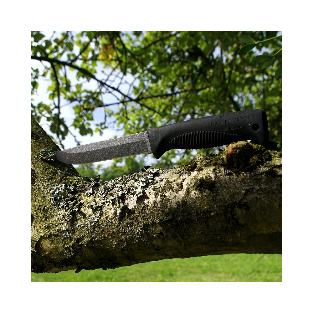 Nóż Ranger został zaprojektowany przez J-P Peltonena, kapitana Fińskich Sił Obronnych. Ostrze ze stali węglowej z powłoką teflonową, rękojeść z polimeru Thermoflex, skórzana pochewka.