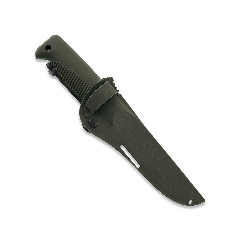 Na rękojeści znajduje się mały otwór na np. paracord. Dołączony jest pasek do zawieszenia na pasku.