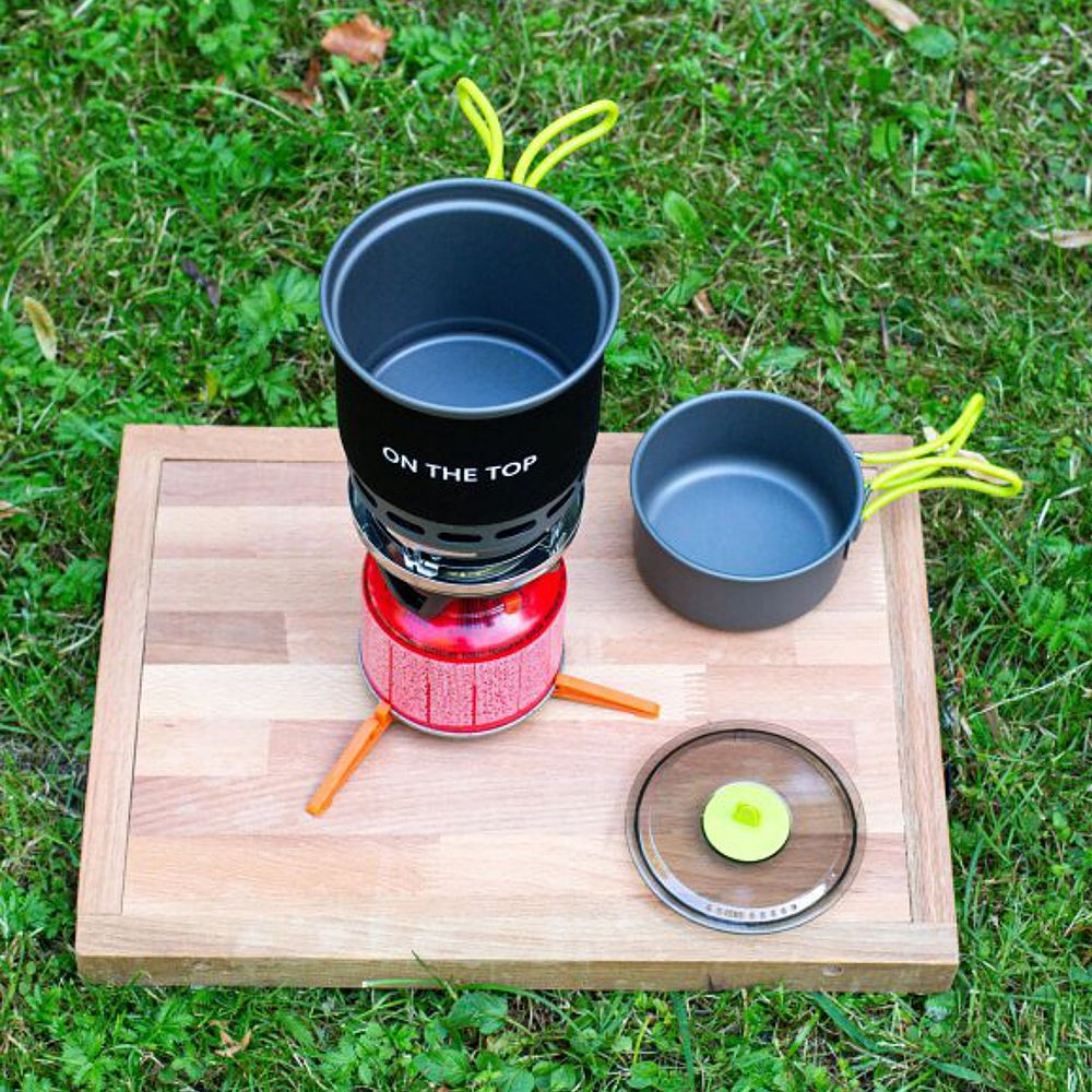 Kompaktowy zestaw do gotowania idealnie sprawdzi się podczas turystyki, kempingu i aktywności outdoorowych. Dzięki przemyślanej konstrukcji oferuje szybkie gotowanie, wysoką wydajność i oszczędność paliwa.
