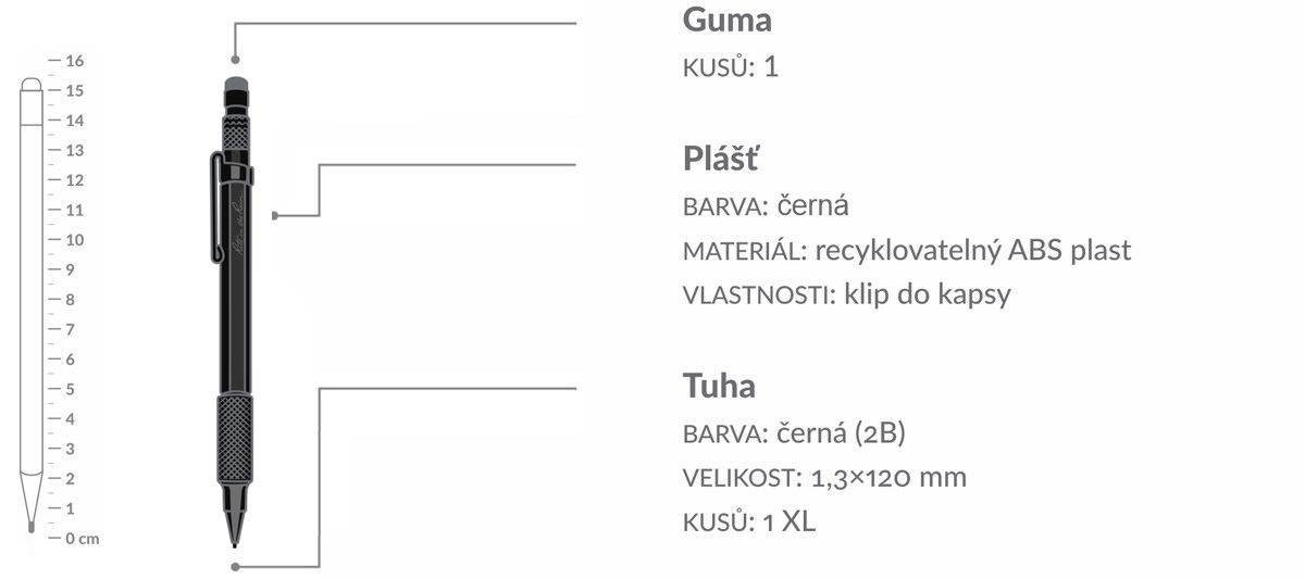 - Mechaniczny ołówek umożliwiający wymianę tuszu