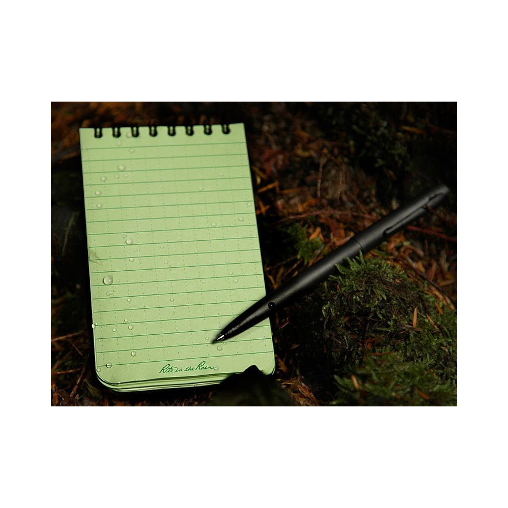 "Rite In The Rain" to specjalny wodoodporny papier odpowiedni do użytku w każdych warunkach pogodowych. W afrykańskiej dżungli, w alaski zimą w pocie i brudu na pustyni irackiej, "Rite In The Rain" zawsze gwarantuje, że notatki będą trwać!