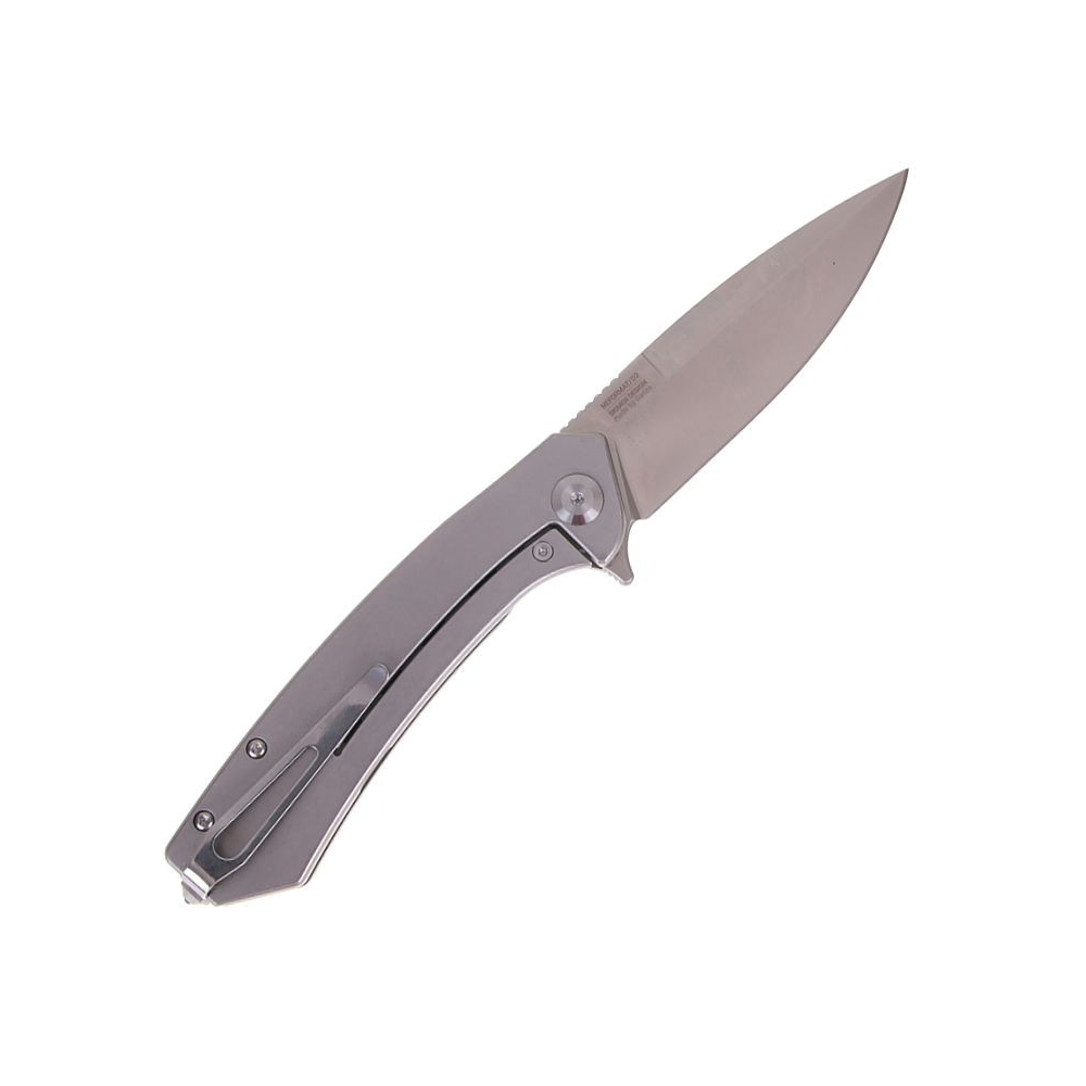 Srdcom noža je vysoko odolná nástrojová oceľ D2, ktorá vyniká dlhou výdržou ostria, vysokou tvrdosťou a odolnosťou proti opotrebeniu. Tvrdosť čepele dosahuje približne 60 HRC, čo zaručuje výborné rezné vlastnosti. Čepeľ má hladké ostrie, dĺžku 85 mm a hrúbku 3,5 mm. Otváranie je rýchle a pohodlné pomocou flippera, pričom poistka Frame-Lock spoľahlivo zabraňuje nechcenému otvoreniu alebo zatvoreniu noža.