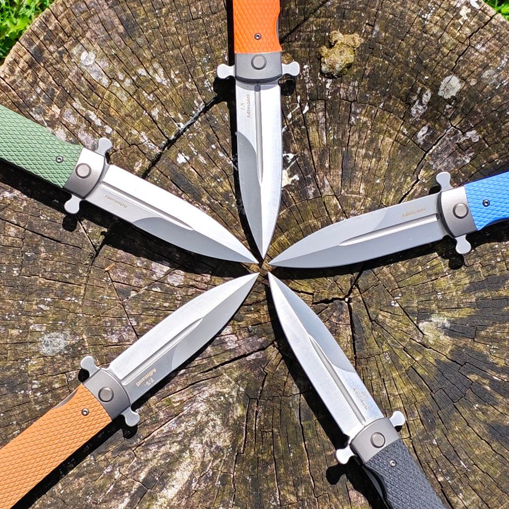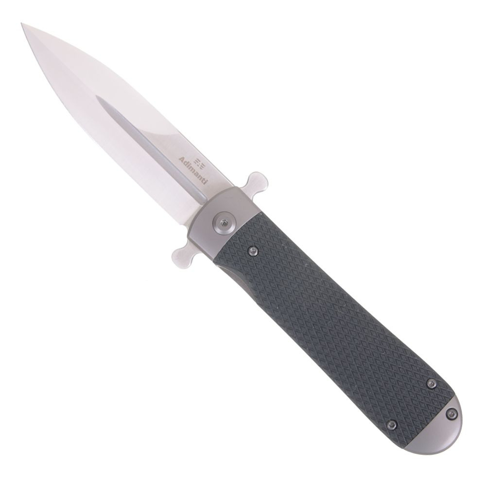 Adimanti Samson je kompaktný flipper, ktorého čepeľ je bezpečne zaistená v otvorenej aj zatvorenej polohe. Rukoväť má pevný oceľový rám doplnený o dve textúrované črienky z materiálu G10. Tento odolný kompozit vyniká vysokou pevnosťou, odolnosťou voči nárazom, mrazu aj UV žiareniu, nešmýka sa v dlani a dlhodobo si zachováva svoj vzhľad.